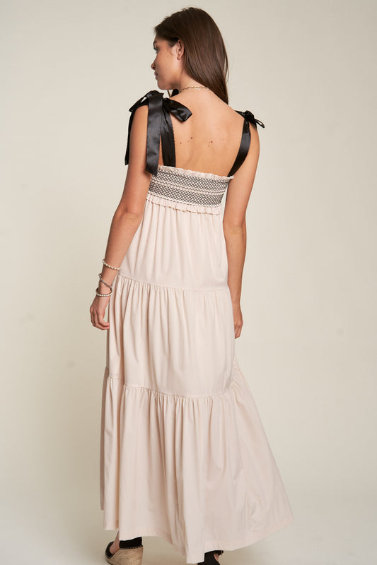 Smocked Bodice + Bow Tie Straps Maxi Dress