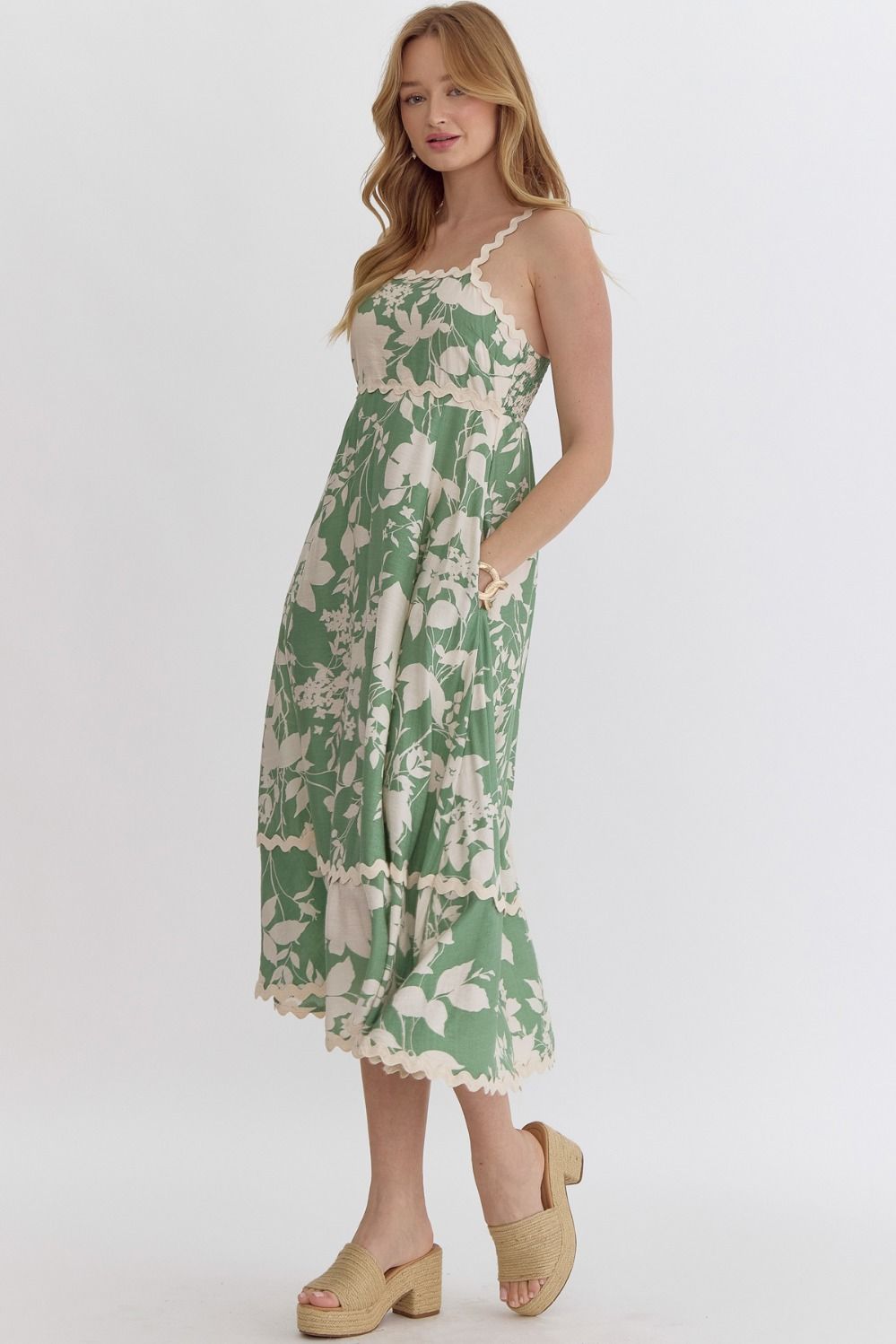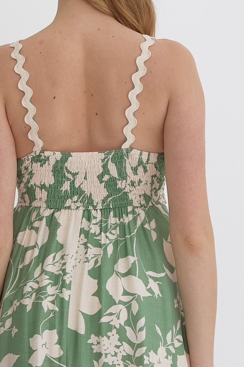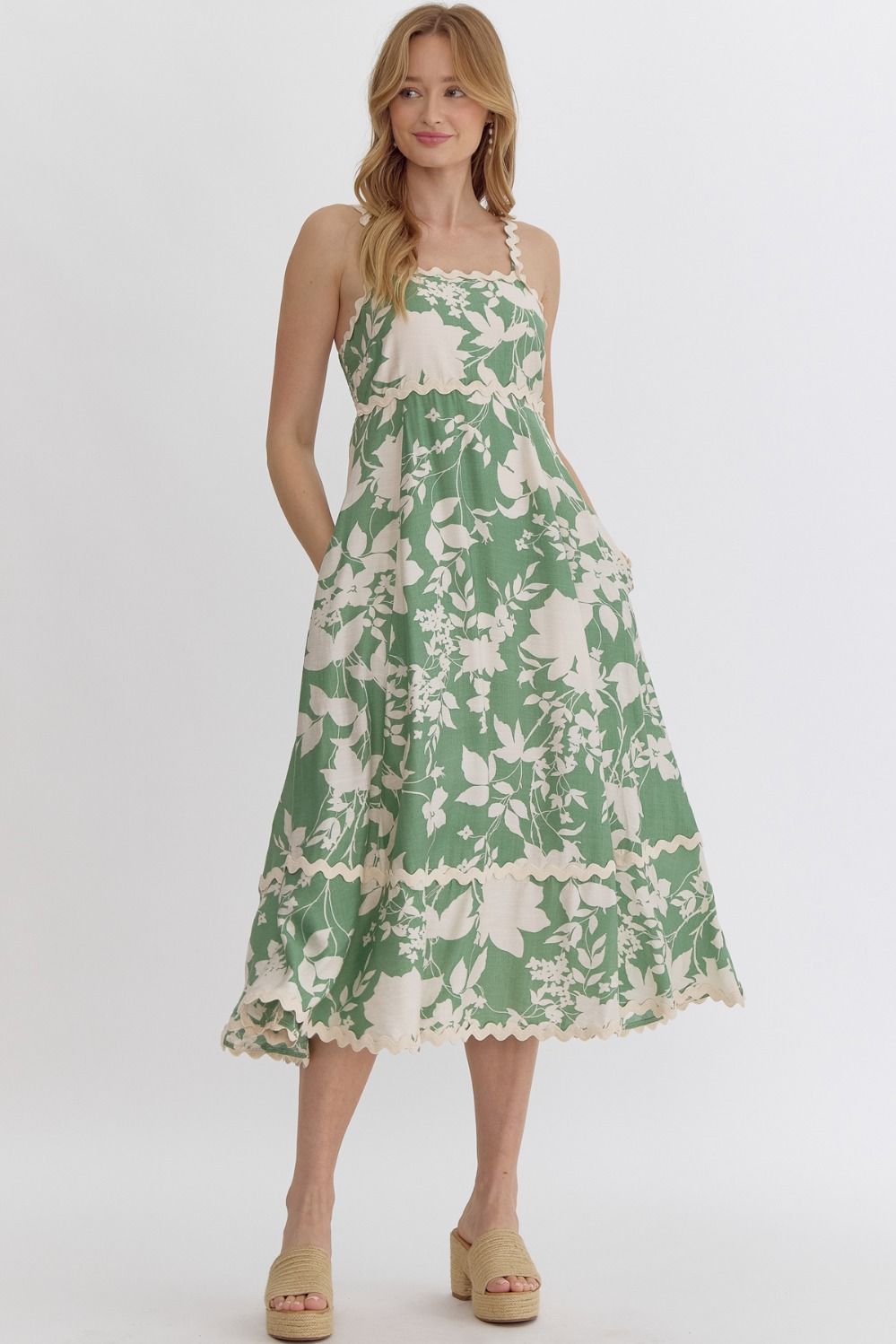 Be the ultimate cool girl in this floral midi dress with a playful square neck, ric rac trim, and smocking at the back. Keep all your essentials with you in the convenient side pocket. Perfect for any occasion, this lightweight dress is lined for comfort.