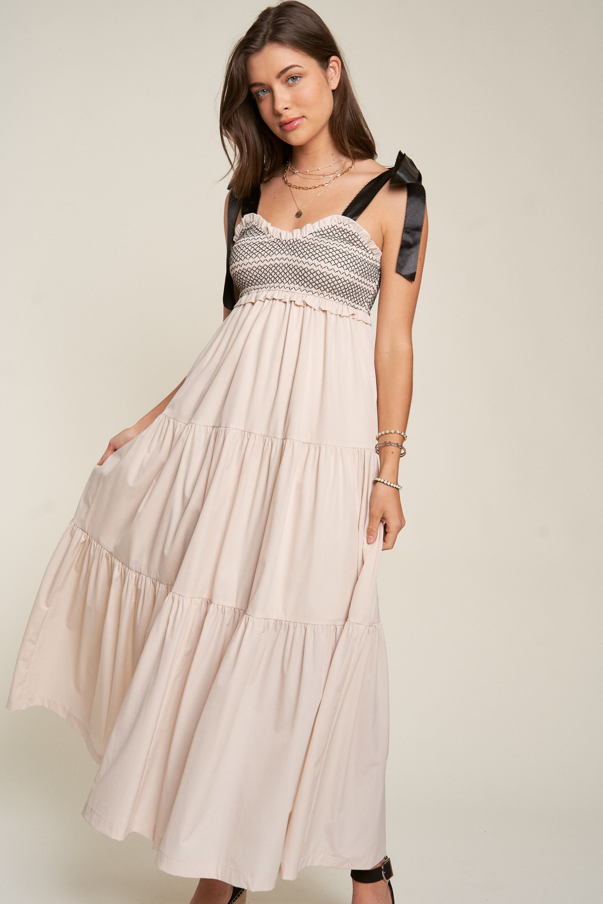 Smocked Bodice + Bow Tie Straps Maxi Dress