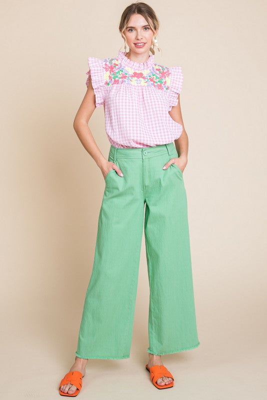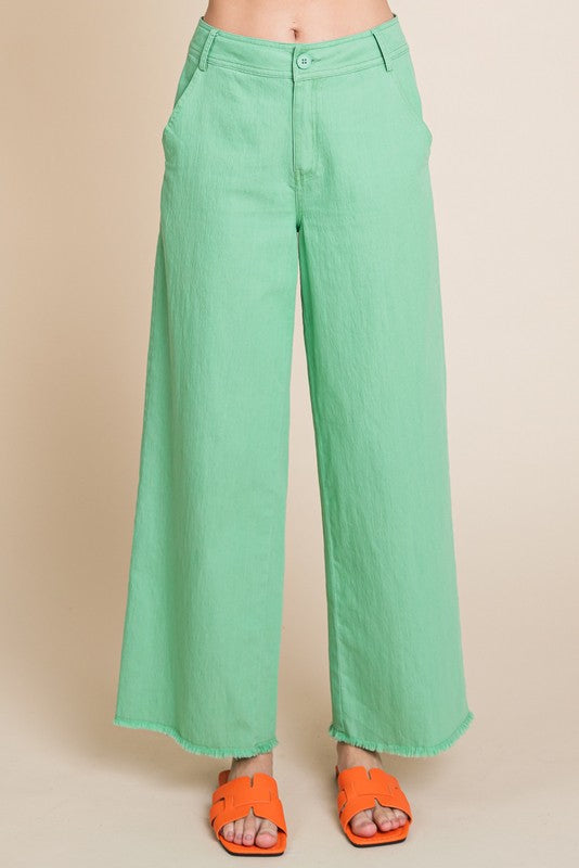 Effortlessly stylish Washing Cotton Loose Pants with buttoned closure, belt loop, and side pockets. Made with 100% lightweight, non-sheer cotton for ultimate comfort. Complete with a frayed hemline for a touch of edge. Perfect for casual days (and nights) out!